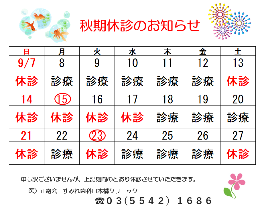 今月の休診日
